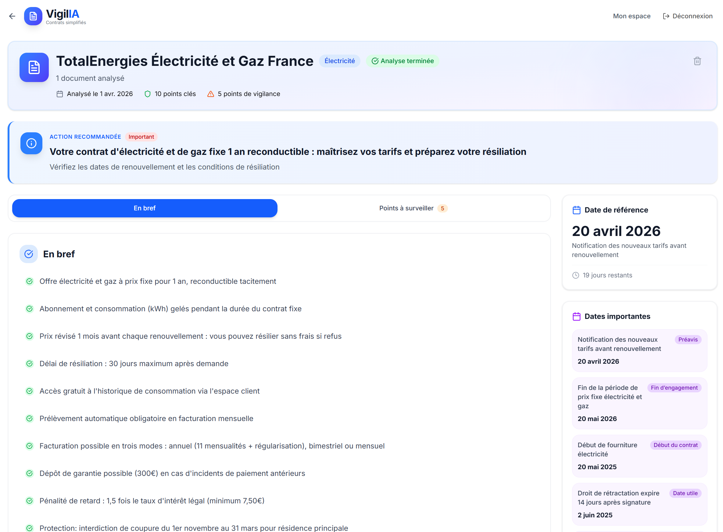 Déposez un PDF et obtenez en 30 secondes un résumé clair, les points de vigilance et les dates clés.